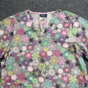 Tafford Uniforms Medical Scrub Top Women Size MEDIUM Christmas Snowflake Pockets