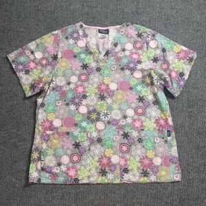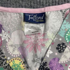 Tafford Uniforms Medical Scrub Top Women Size MEDIUM Christmas Snowflake Holiday Pockets.