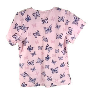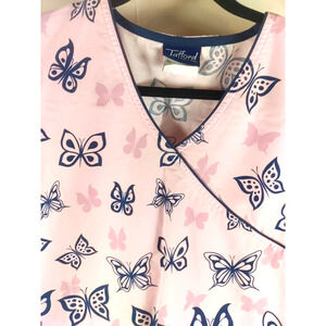 Tafford Women's Scrub Top Size X Small Pink Black Butterfly Medical Nursing