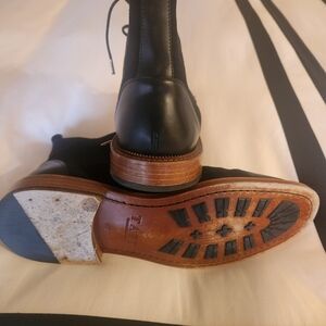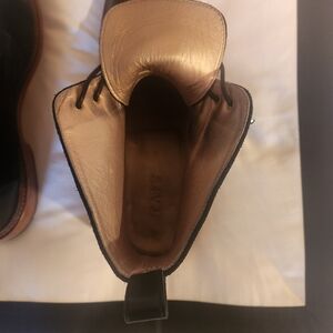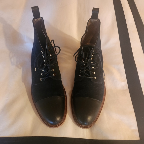 Elegant black leather and suede boots. Lace-up design with sturdy sole. Ideal for versatile wear.