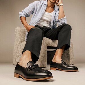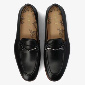 The Russell bit loafer by TAFT showcases a bold, classic style with striking hardware detail. Crafted from genuine leather, it is enhanced with elegant Jacquard accents around the ankle.