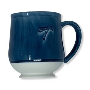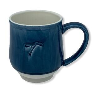 Tag Blue Reactive Speckle Monogram Initial Mug “T”. Stoneware. Dishwasher and microwave safe. From Nordstrom. Great for coffee and tea lovers. Measures approximately 4.5”