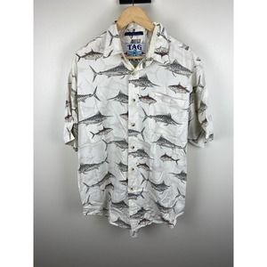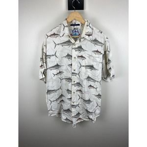 Tag & Brag All Over Print AOP Sword Fish Button Up Tee Shirt 26x33 - L