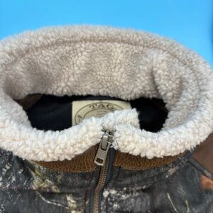 Warm fleece jacket with a camouflage design. Features a cozy cream collar. Great jacket for your fall hunting outings.