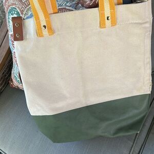 Tag & Crew Dipped Tote with Yellow Strap-Olive