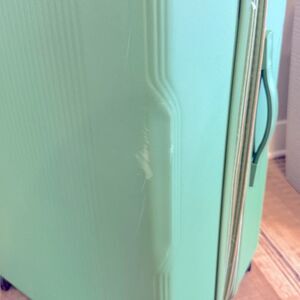 There are some scratches on the luggage. Please check the pictures, as all wheels and zippers are working.