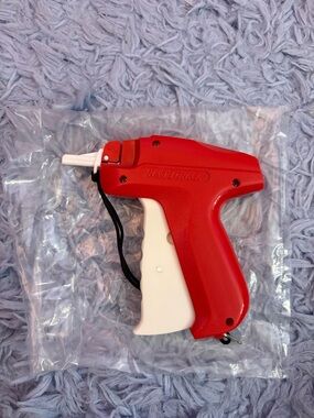 Bright red tagging gun with a white trigger. Features visible "NATIONAL" logo on the body. Lightweight, ergonomic grip. Ideal for tagging retail items.