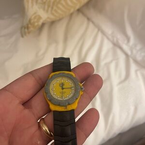 Late 80s Tag watch. The black band that comes with it is also Tag Heuer. The bezel has signs of use and the watch at this time is not in working order.