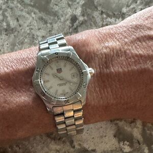 Elegant silver watch with a classic design. Features a durable metal band and clear dial.