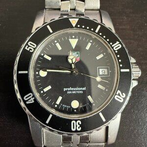 Timeless design meets Swiss precision. This TAG Heuer WD1210 features a stainless steel case and bracelet, black dial with luminous markers, and a date window at 3 o’clock. Quartz movement ensures reliable timekeeping, while the unidirectional bezel adds a sporty touch. Ideal for everyday wear or collectors of vintage TAG Heuer.