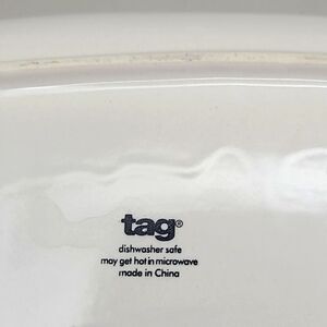 * Oval white platter with red trim border