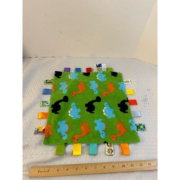 Taggies baby infant blanket crib toy blue dinosaurs. measures 12x12". good used condition.