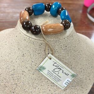 Tagua Brown and Blue Dora Beaded Bracelet