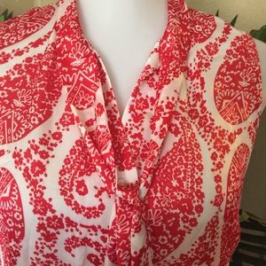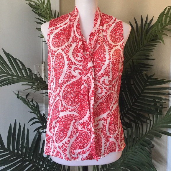 Buttons down t sleeveless top in xtra small size. V neck with neck tie. Printed |. PRICE NEGOTIABLE. Reasonable offer are welcome