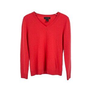 Tahari 100% Cashmere V Neck Sweater Coral Sz Small