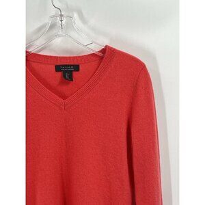 Tahari 100% Cashmere V Neck Sweater Pink Orange Coral Sz Small