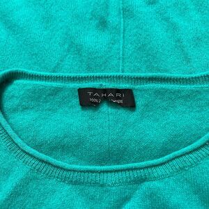 Tahari 100% Cashmere Womens Sweater Green Long Sleeve Pullover
