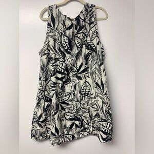 Tahari 100% Linen Black White Leaf Print Sleeveless Tunic Dress Women’s 2X