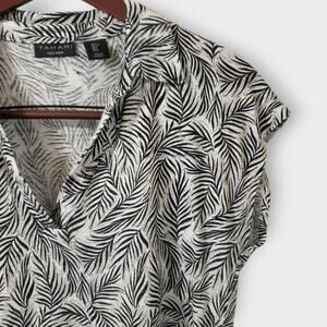 Tahari 100% Linen Black White Tropical Palm Print Collared Crop Top Large Summer