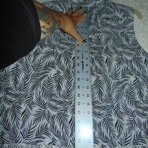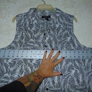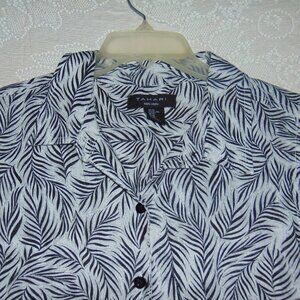 Tahari 100% Linen Blouse Sleeveless Leaf Pattern XL Button Up Women's Beach Coastal Lagen Look