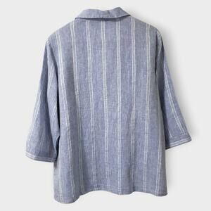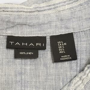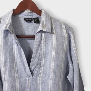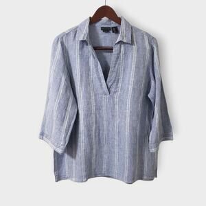 Tahari 100% Linen Blue Stripe Popover Tunic Top Sz Large Casual Coastal Boho