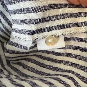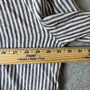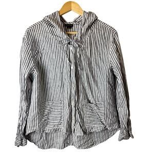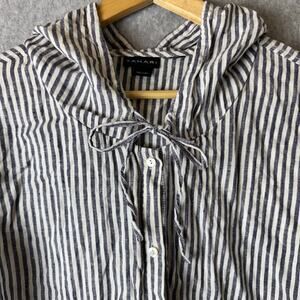 Tahari 100% Linen Button Down Shirt Womens XL Striped Hooded Lagenlook Coastal
