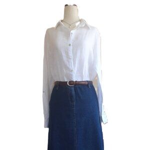 Tahari 100% Linen Button Down Tunic White Small