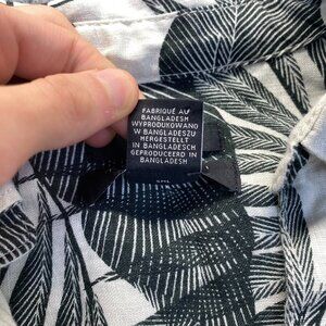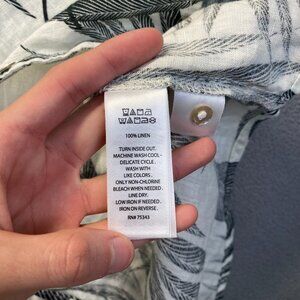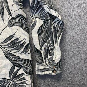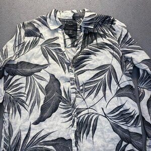 Tahari 100% Linen Button Front Blouse Roll Tab Sleeve Tropical Botanical Size M