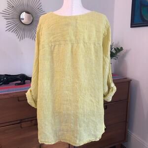 Tahari 100% Linen Button Front Long Tunic Top 3X Yellow Langenlook Minimalist