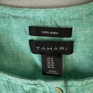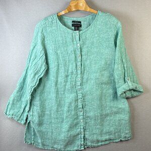 Tahari 100% Linen Button Shirt Womens 1X Lagenlook Pastel Yacht Roll Tab Sleeves