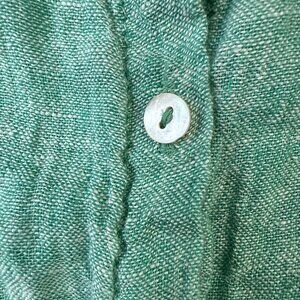 This Tahari 100% Linen Button Shirt in size 1X features a pastel green color with a solid pattern, perfect for various occasions such as travel, wedding, party, casual outings, and workwear. The shirt has a relaxed fit and long sleeves with roll tab accents, making it a stylish and breathable option for all seasons. The button-up closure and round neck add to the classic and bohemian theme of the top, suitable for beach or everyday wear.