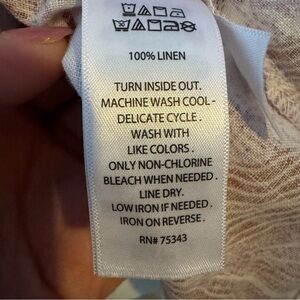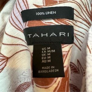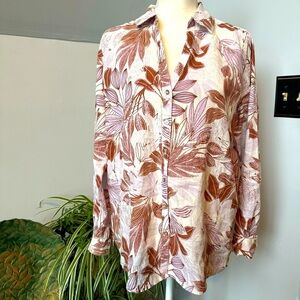 Tahari 100% Linen Button Up Blouse White w/ Leaf Pattern in Brown & Lavender Med
