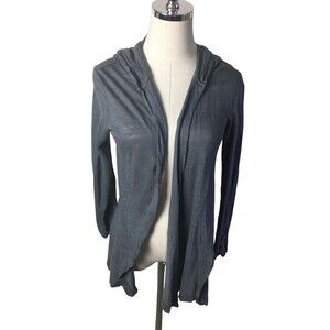 Tahari 100% Linen Hooded Cardigan Size Small Womens Gray Open Front Roll Tab Sleeves. Excellent condition.