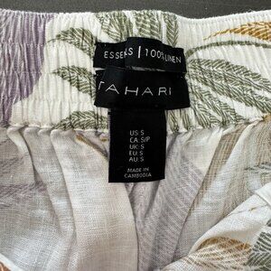 Tahari 100% Linen Crop Pant Wide Leg Ivory Multicolored Tropical Floral Beach Resort Vacation
