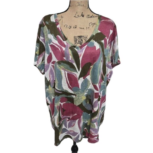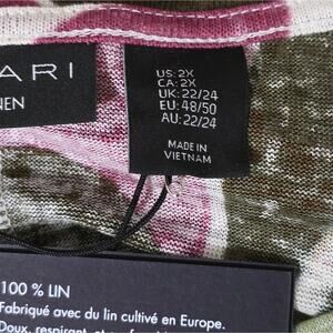 Tahari 100% Linen Floral Tropical Long‎ Tee Shirt Plus Size 2X New