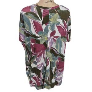 Tahari 100% Linen Floral Tropical Long Tee Shirt Plus Size 2X New