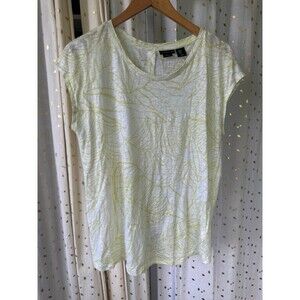 Tahari 100% Linen Hawaiian Inspired Tropical Leaves Graphic Back Botton Shirt M