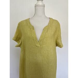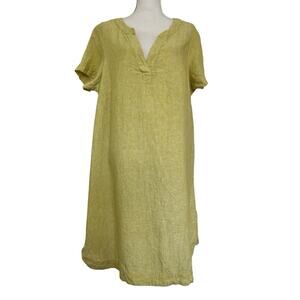 Tahari 100% Linen Knee Length Shift Dress Size 1X Lime Green Lagenlook Travel