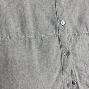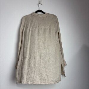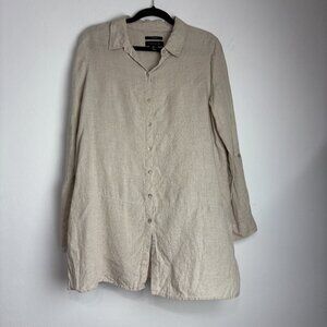 Tahari 100% Linen Long Sleeve Button Down Tunic Top Beige Size L Roll Tab Sleeve