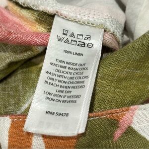 Tahari 100% Linen Pants Sz M Tropical Abstract Pull On Elastic Waist High Rise