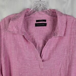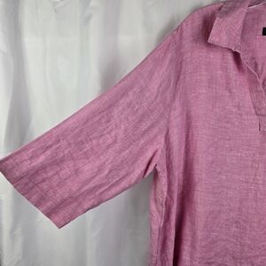 Tahari 100% Linen Pink 3/4 Sleeve V-Neck Lagenlook Tunic Top Plus Size 3X
