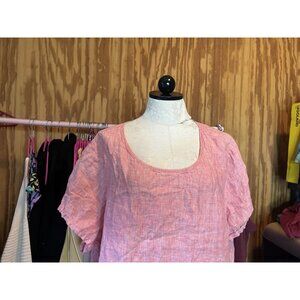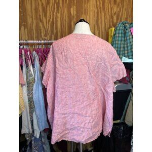 Tahari 100% Linen Red Boxy Blouse Short Sleeve Top Women 3X Plus Beach
