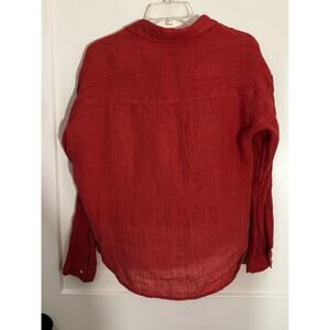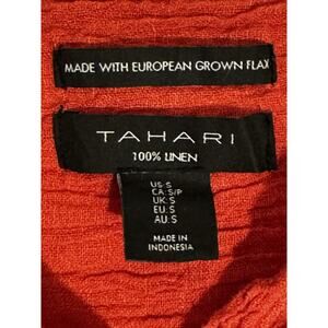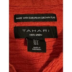 Tahari 100% Linen Red Long Sleeve Button Up Shirt LagenLook Resort Beach Sz M