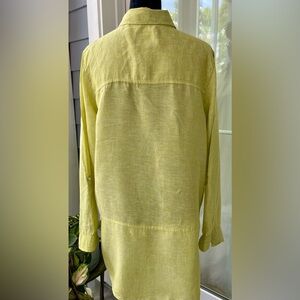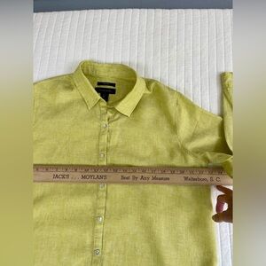 Tahari 100% Linen Roll Tab Sleeves Shirt, vibrant yellowish green color Size L