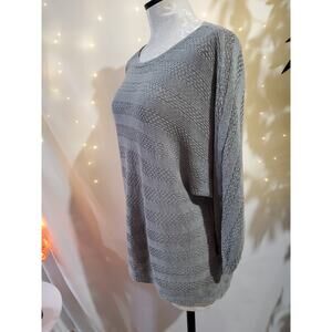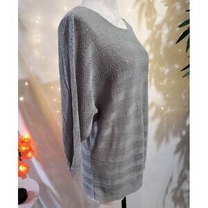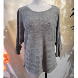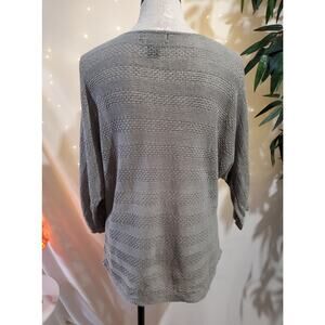 Tahari 100% Linen Sage Green Dolman Sleeve Stripe Knit Top Womens Size M Neutral