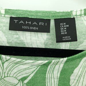 Tahari 100% Linen Short Sleeve Botanical Print Tee/Top M Green/Cream, VGUC with minimal wear, no flaws.