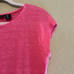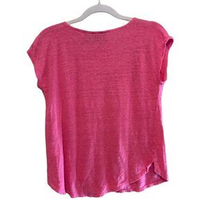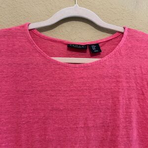 Tahari 100% Linen Short Sleeve Slub Knit Top Shirt Women Medium Hot Pink Coastal