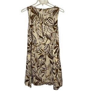 Tahari 100% Linen Sleeveless Tropical Palm Leaf Print Shift Dress Size S Pockets