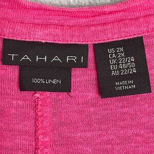 Tahari 100% Linen Slub Top Womens Plus Size 2X Pink Short Sleeve Lagenlook Beach