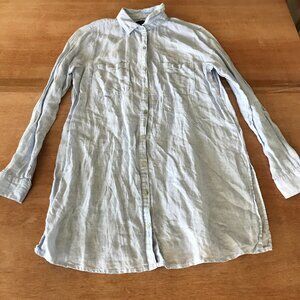 Tahari 100% Linen Top Women S Blue Button Up Pocket Long Sleeve Collared 17035